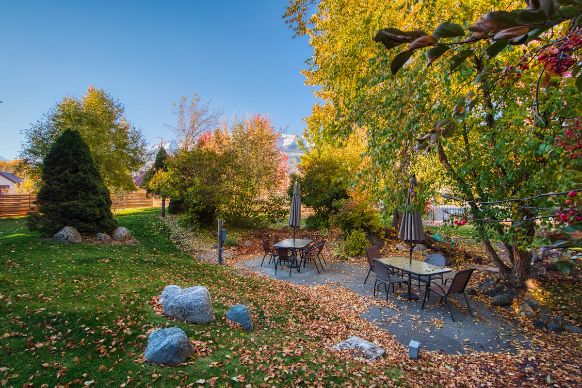 At the south end of the grounds, you will find a Gazebo that sits next to Big Bend creek. Centrally, there's a patio with a BBQ and tables that are next to a small marsh, complete with cattails and singing frogs. The lush lawn is a magnet for people and Joseph's famed wild-but-tame deer population; you will often find them lounging around the place, just waiting to be admired. Just south across the creek is a coffee shop, close enough to enjoy a piping hot cup while you relax on the grounds. The grounds are also fenced along the front to maintain the exclusive use by our guests.